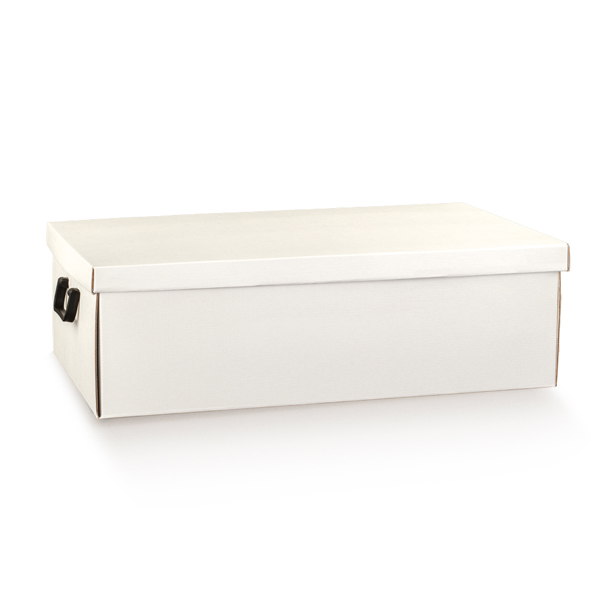 Caixa para 2 garrafas em cartão microcanelado revestido a tela texturada branca
